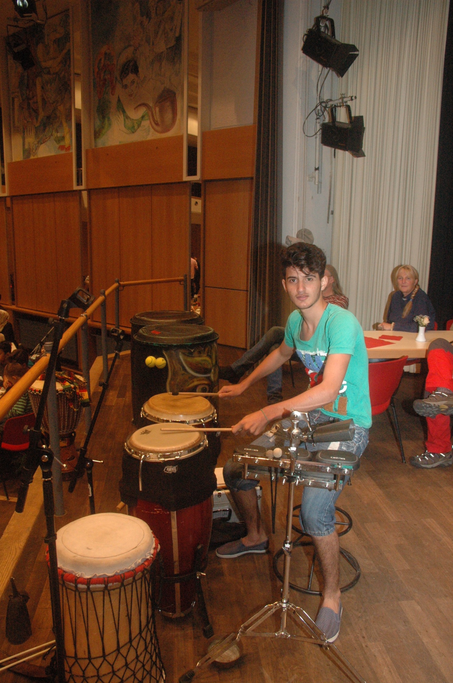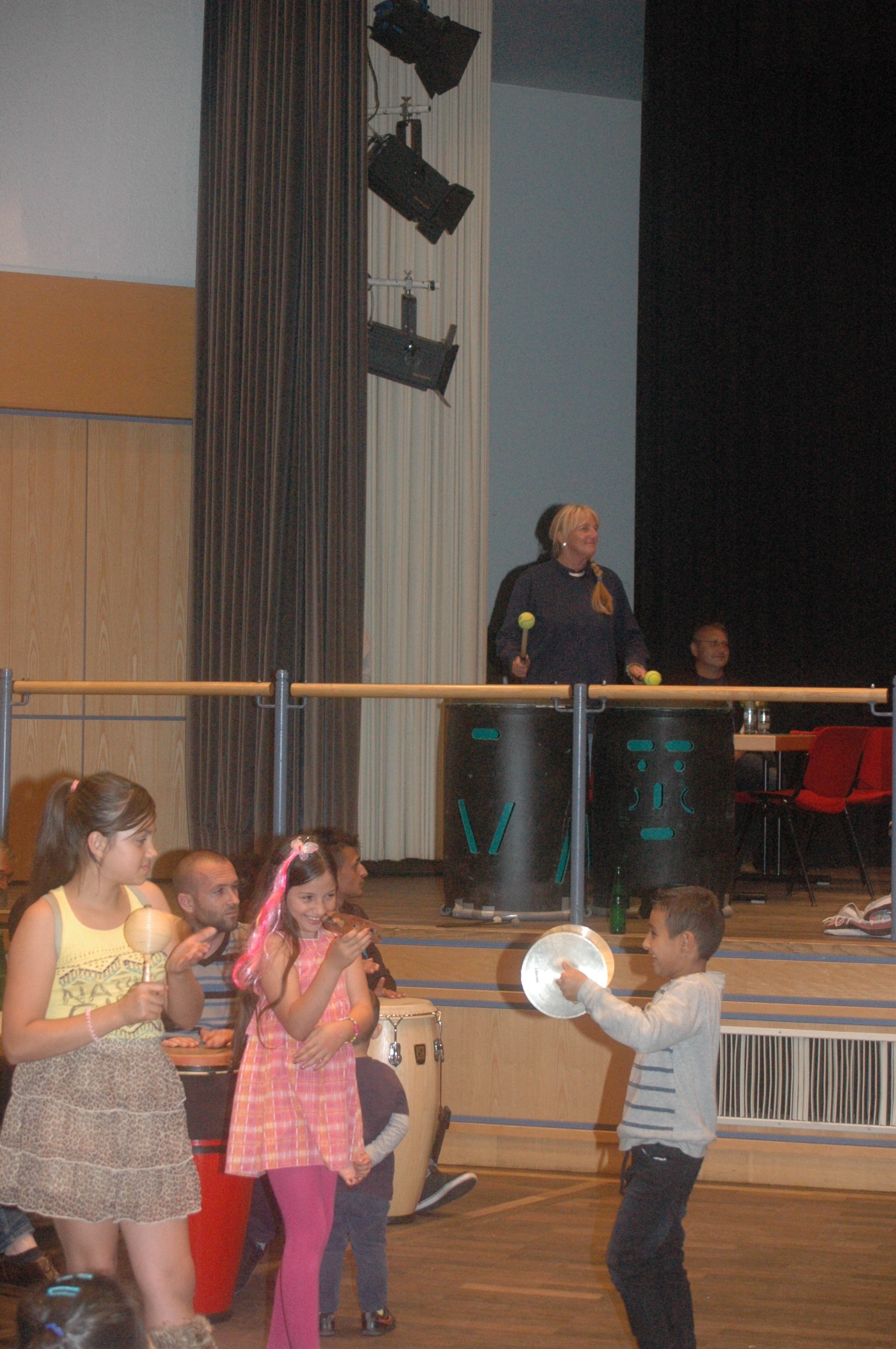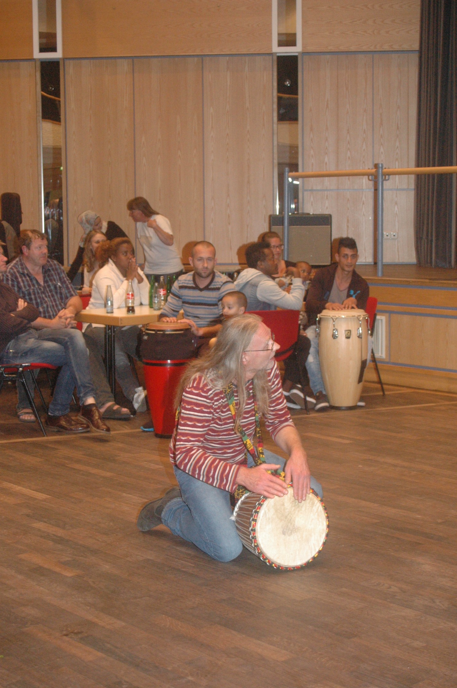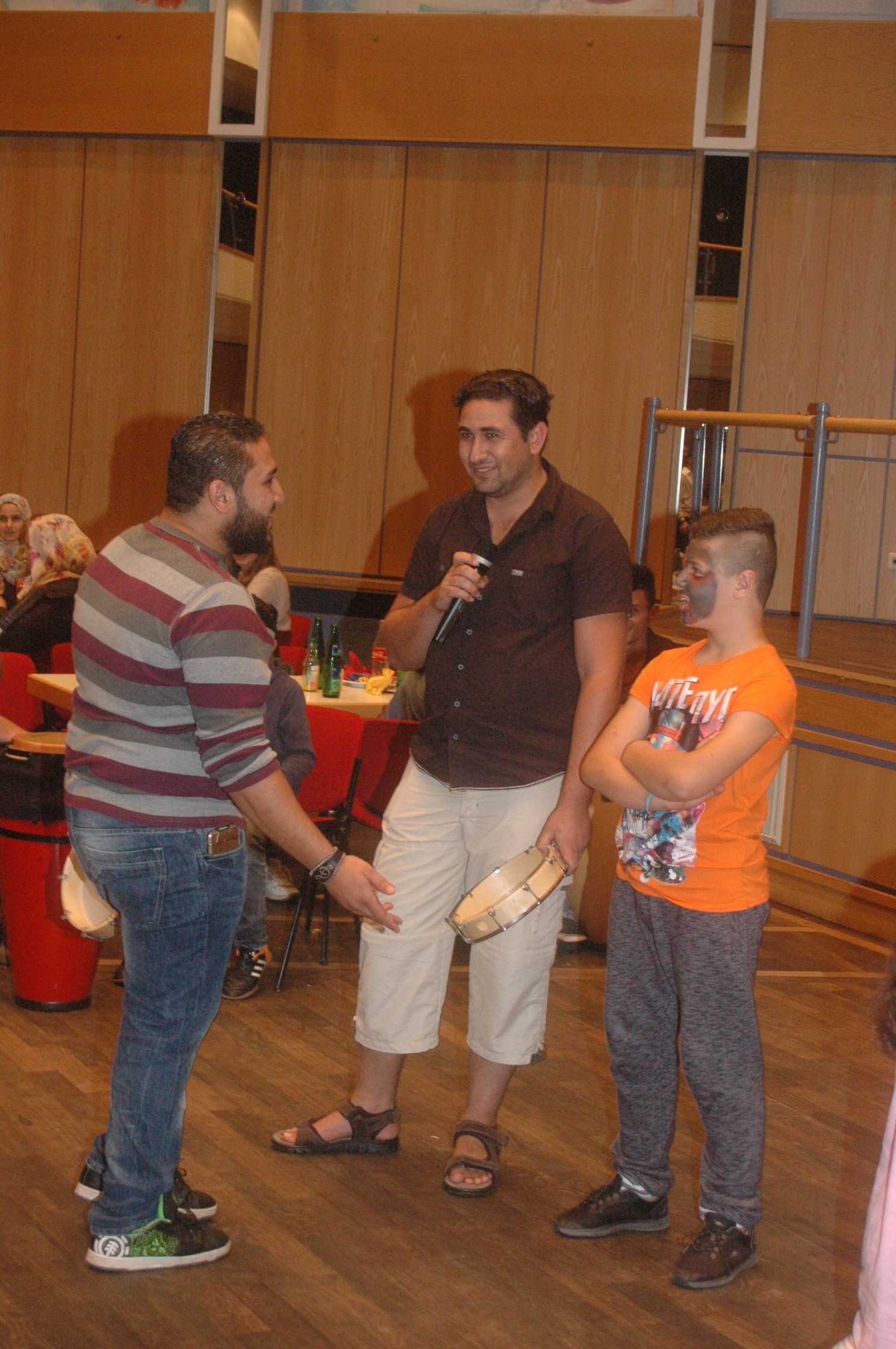 Nach einem gut besuchten Gottesdienst mit Abendmahl in der evangelischen Kirche als Eröffnungsveranstaltung der Interkulturellen Woche Rees am Vortag trafen sich am Montag, dem 19. September 2016 abends um 19 Uhr ca. 200 Reeser, in Rees lebende Flüchtlinge und auch Besucher von außerhalb im Bürgerhaus. Nach einem köstlichen Buffet mit von vielen Händen selbstgemachten Speisen aus aller Welt wurde ein kurzes Theaterstück der neugegründeten Gruppe „Darabisch“ unter Leitung von Silja Böhling-Buhl zum Thema Sprache aufgeführt, welches mit großem Applaus bedacht wurde. Anschließend sorgten 3 Musiker aus Wesel unter der Leitung von Stefan Schnelting mit ihren mitgebrachten Trommeln und anderen Instrumenten für Stimmung und die Anwesenden brachten sich spontan und sichtlich erfreut mit Gesang und Tanz verschiedenster Couleur mit ein, womit der Abend einen schwungvollen Abschluß fand.