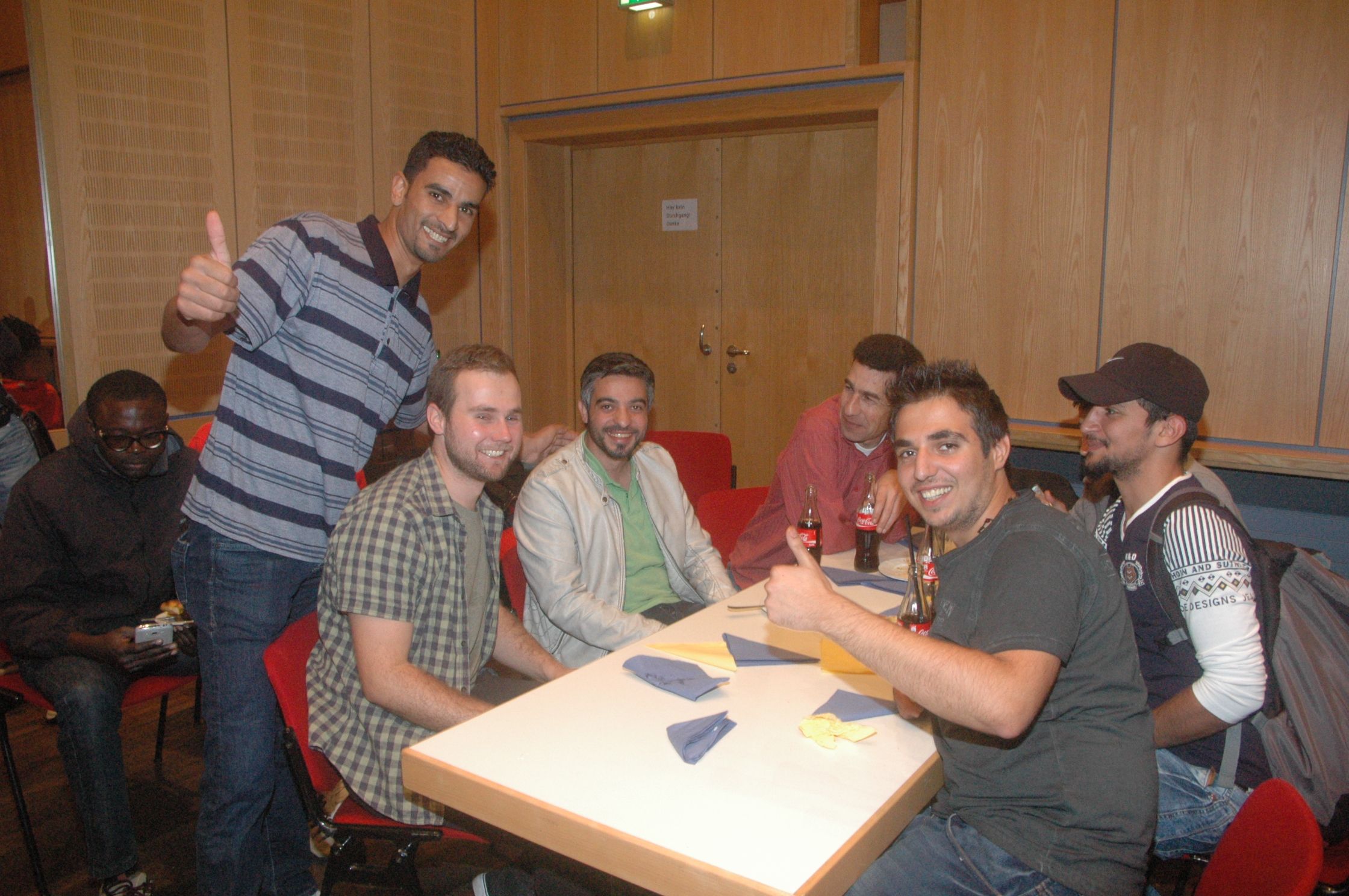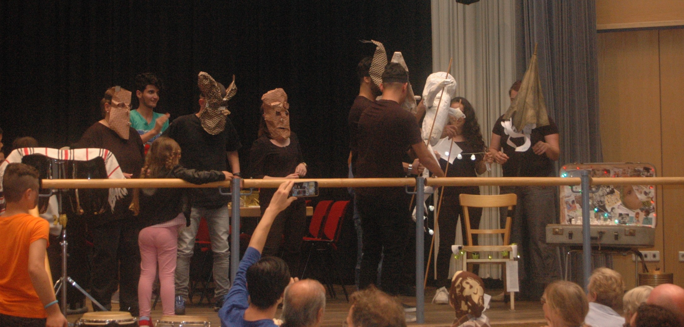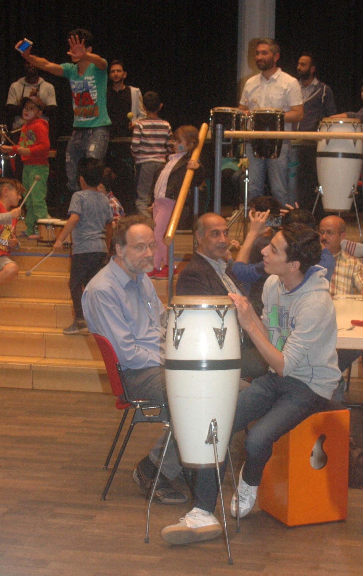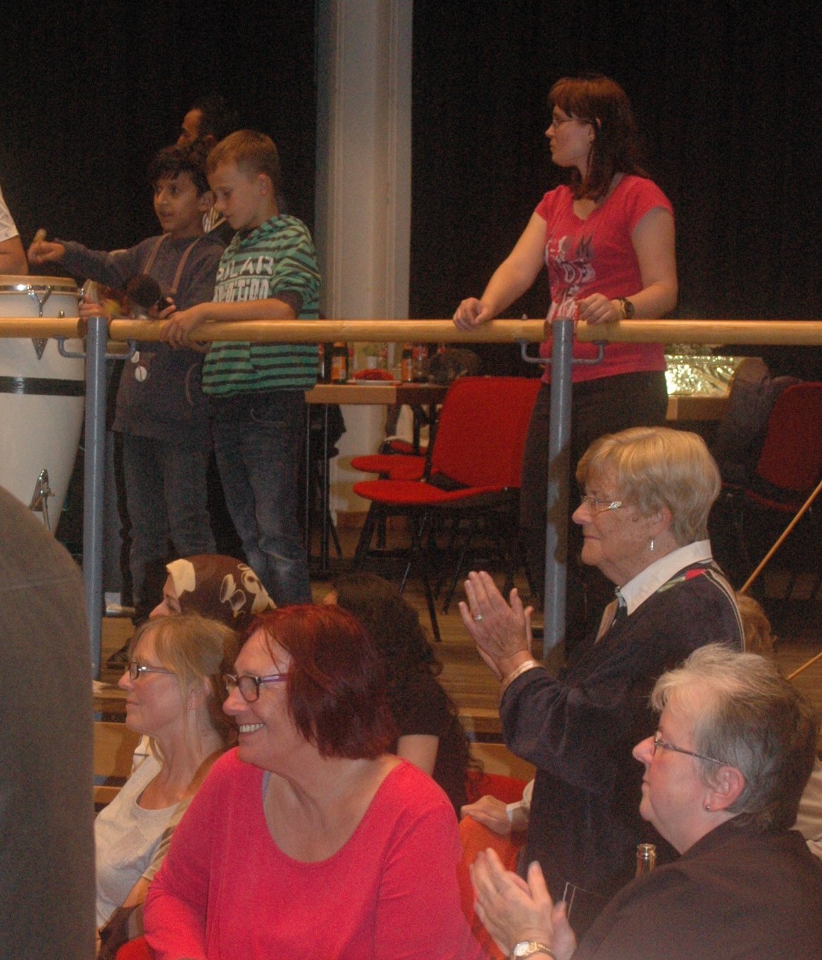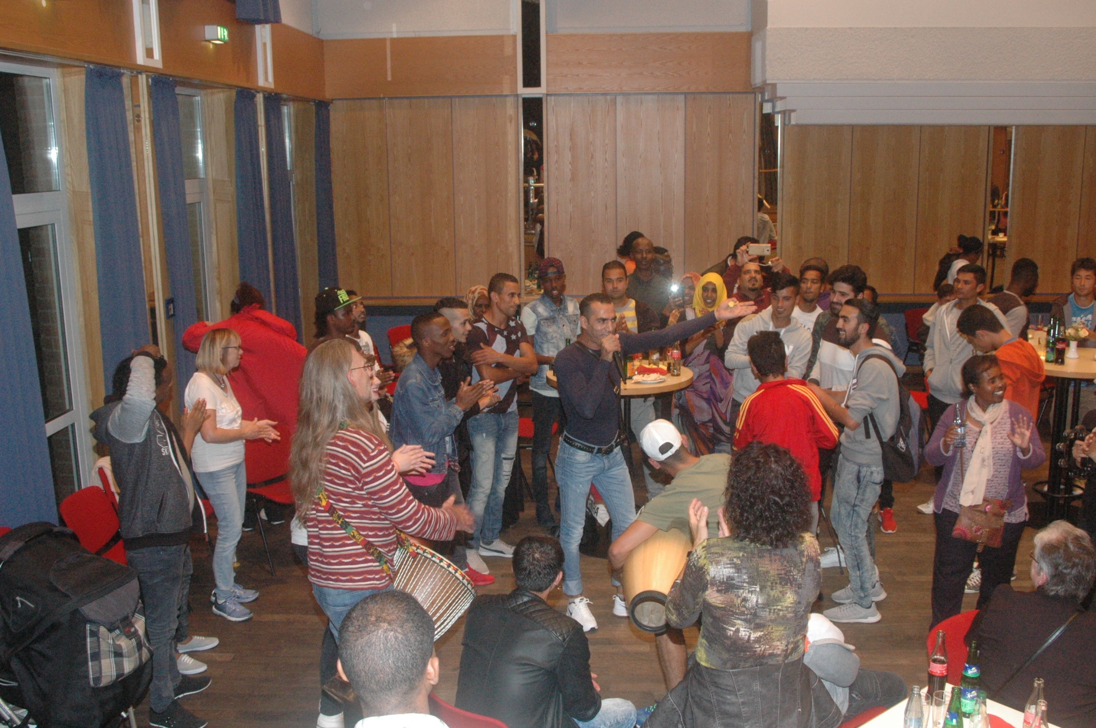 Nach einem gut besuchten Gottesdienst mit Abendmahl in der evangelischen Kirche als Eröffnungsveranstaltung der Interkulturellen Woche Rees am Vortag trafen sich am Montag, dem 19. September 2016 abends um 19 Uhr ca. 200 Reeser, in Rees lebende Flüchtlinge und auch Besucher von außerhalb im Bürgerhaus. Nach einem köstlichen Buffet mit von vielen Händen selbstgemachten Speisen aus aller Welt wurde ein kurzes Theaterstück der neugegründeten Gruppe „Darabisch“ unter Leitung von Silja Böhling-Buhl zum Thema Sprache aufgeführt, welches mit großem Applaus bedacht wurde. Anschließend sorgten 3 Musiker aus Wesel unter der Leitung von Stefan Schnelting mit ihren mitgebrachten Trommeln und anderen Instrumenten für Stimmung und die Anwesenden brachten sich spontan und sichtlich erfreut mit Gesang und Tanz verschiedenster Couleur mit ein, womit der Abend einen schwungvollen Abschluß fand.