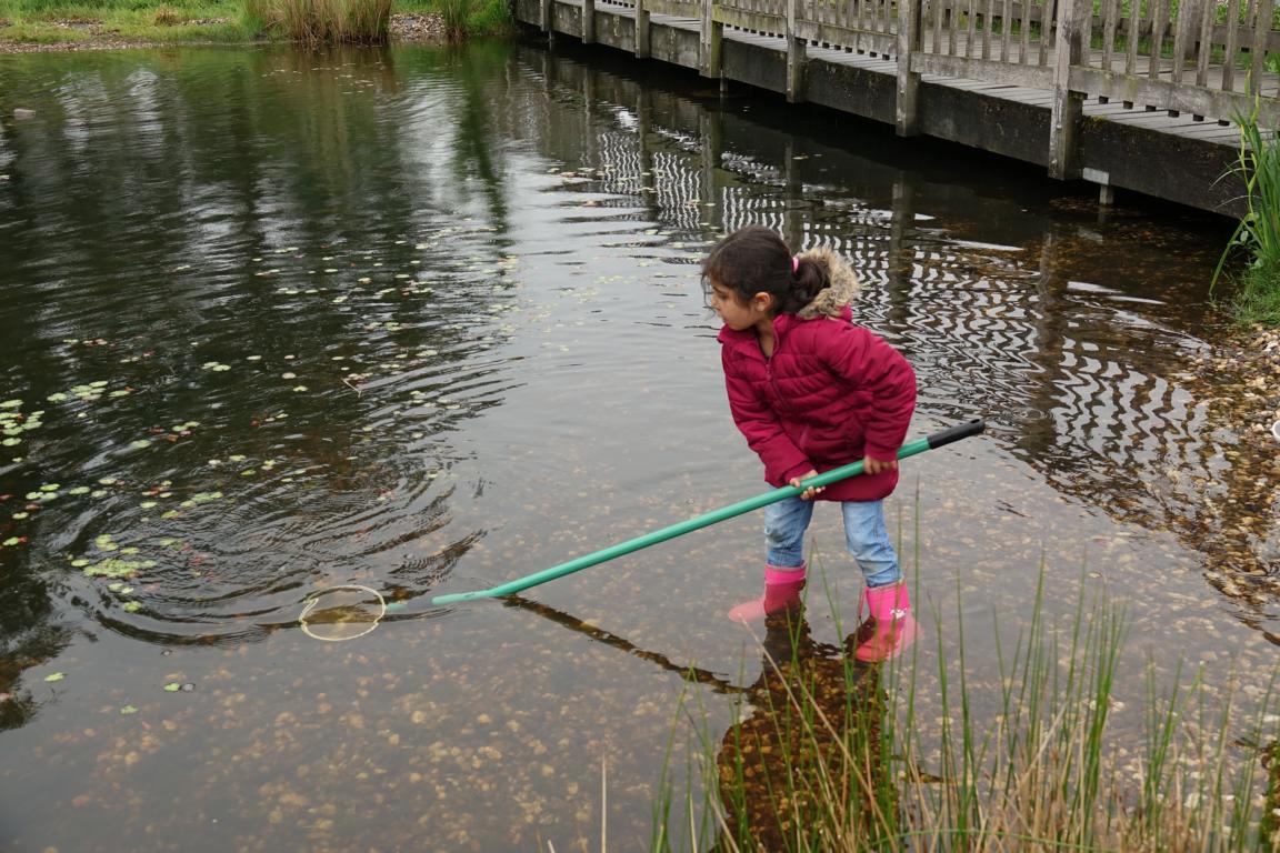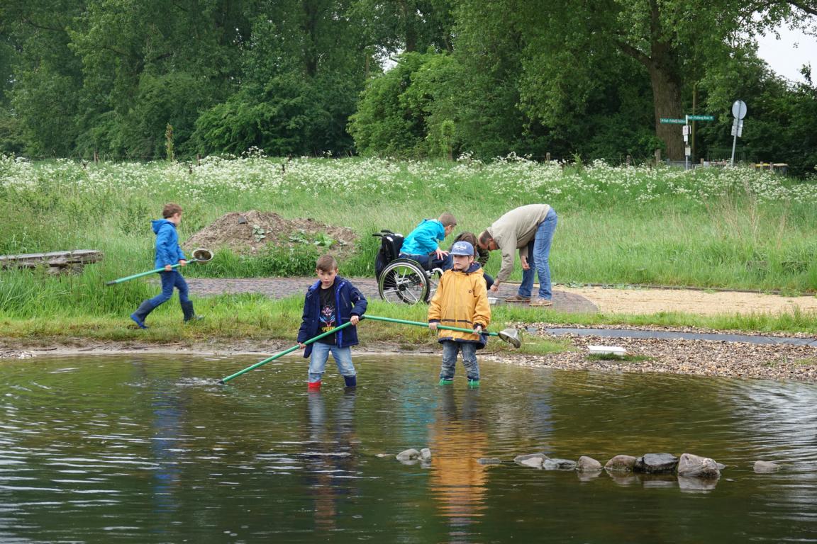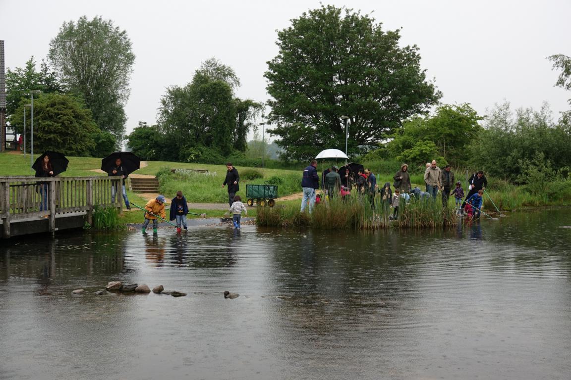 Gemeinsam wurden die Schätze aus dem Tümpel begutachtet (aus „Gemeinsam die Natur entdecken“, NRZ 21.05.2017, Autor Wolfgang Remy, Foto Lindekamp)