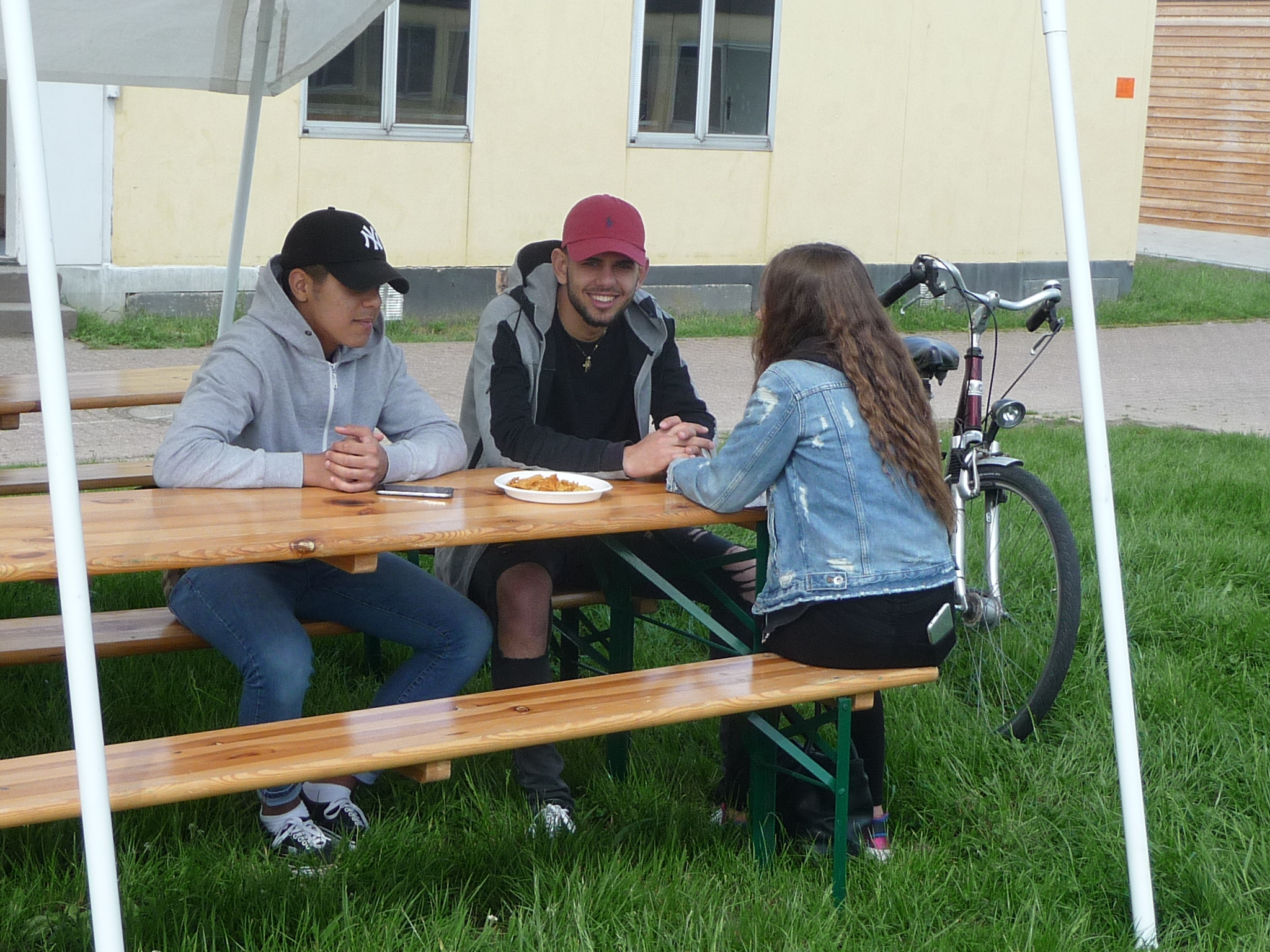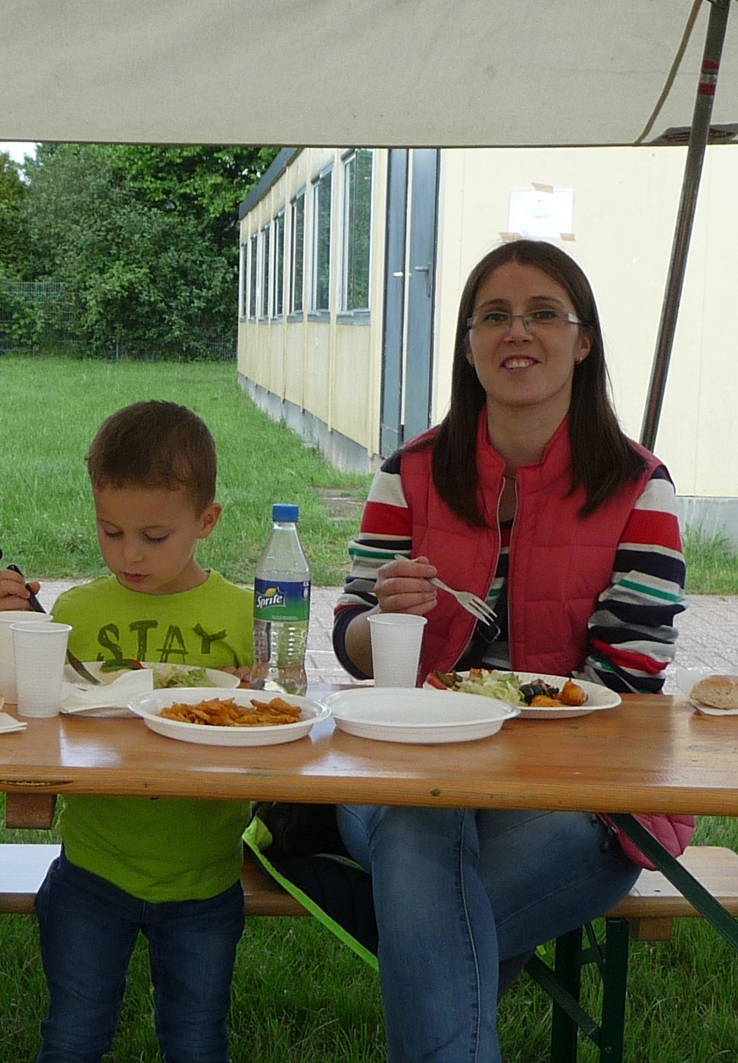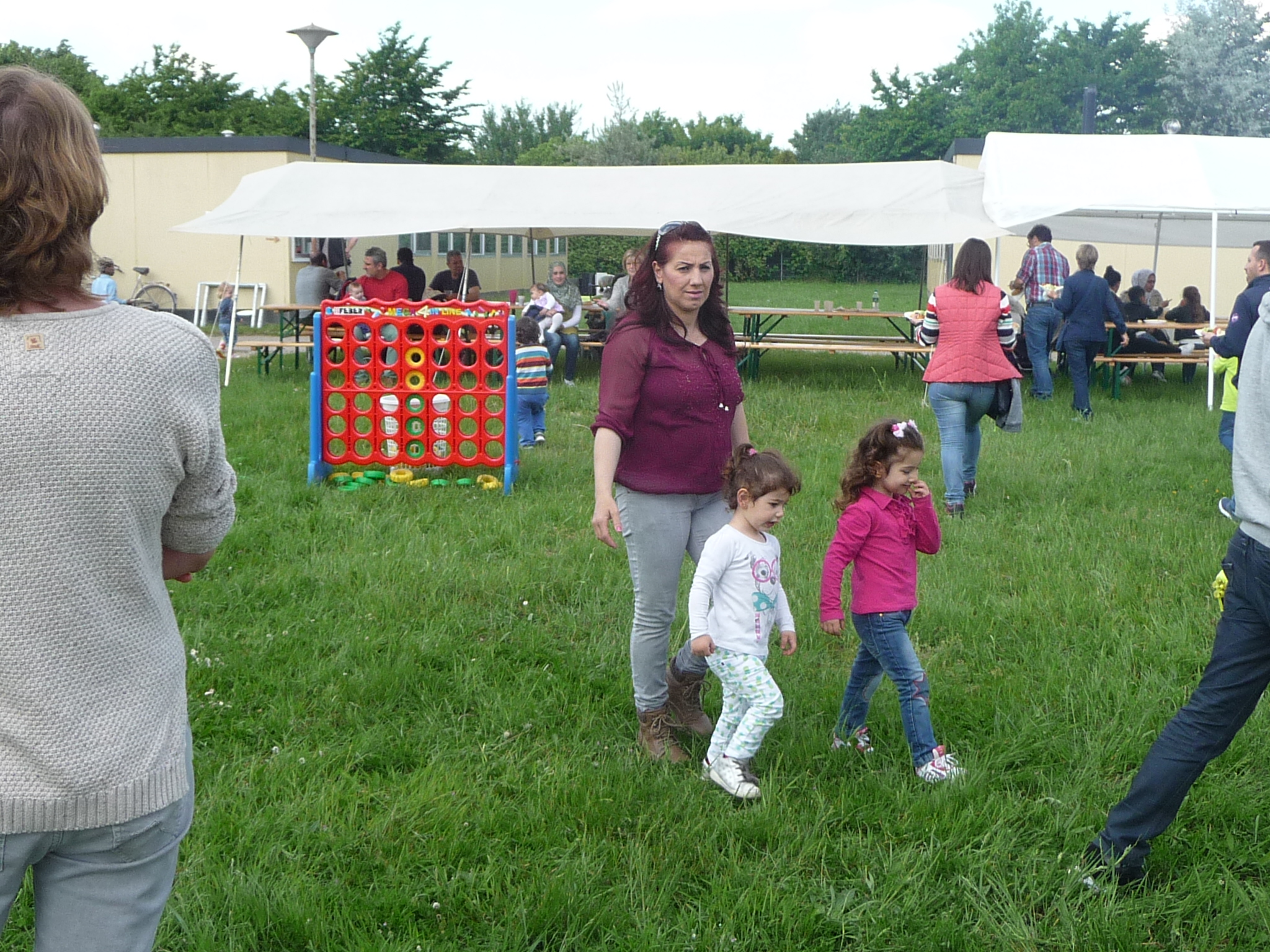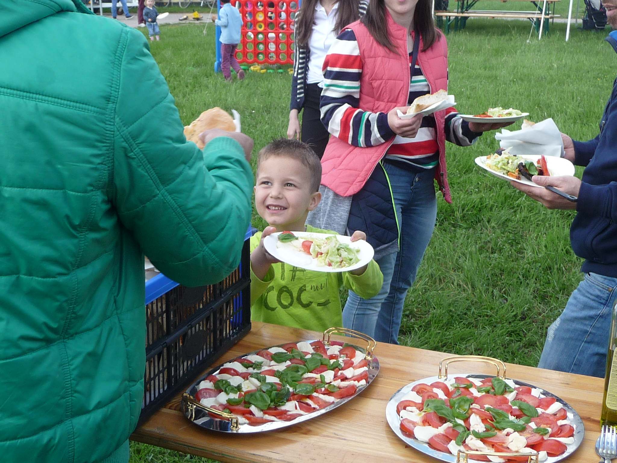 Mit freundlicher Unterstützung von Beate Schams, „Arabische Spezialitäten“ Rees, wurde im Vorfeld eingekauft und zusammen mit Flüchtlingen Salate und andere Speisen zubereitet. Auch der Auf- und Abbbau von Zelten und Tischen und das Grillen ging Hand in Hand, so daß der teils windige aber überwiegend sonnige Nachmittag in guter Stimmung und im Gespräch miteinander verbracht wurde.